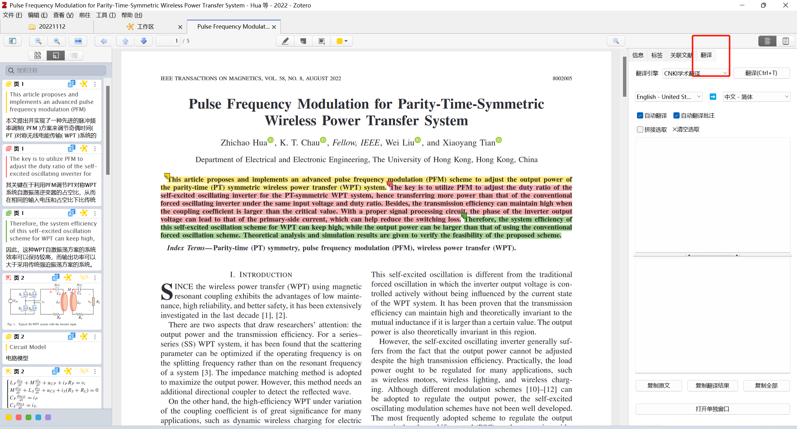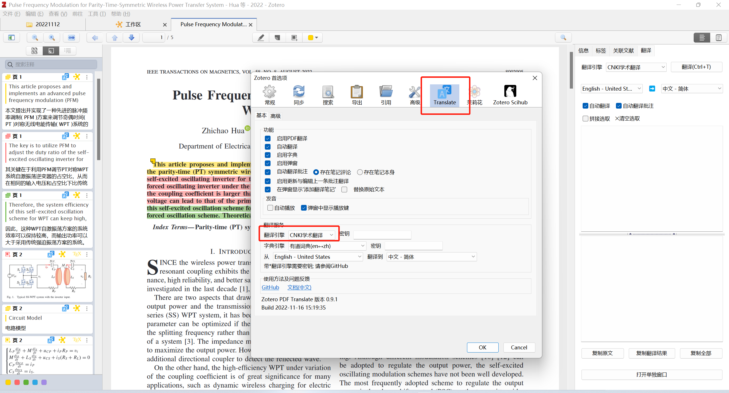 使用【知云文献翻译】无法直接记录笔记,所以还是下了一个内置的插件,安装成功的标志是阅读文献时上方出现【翻译】按钮