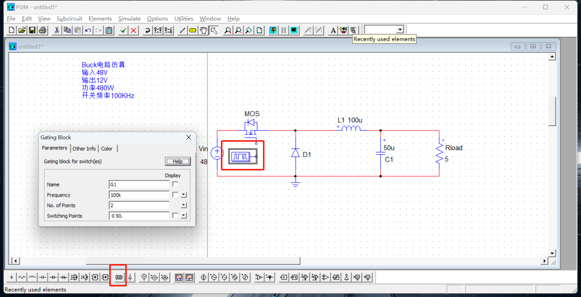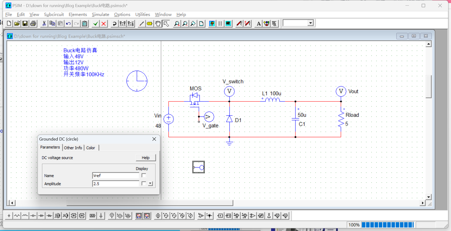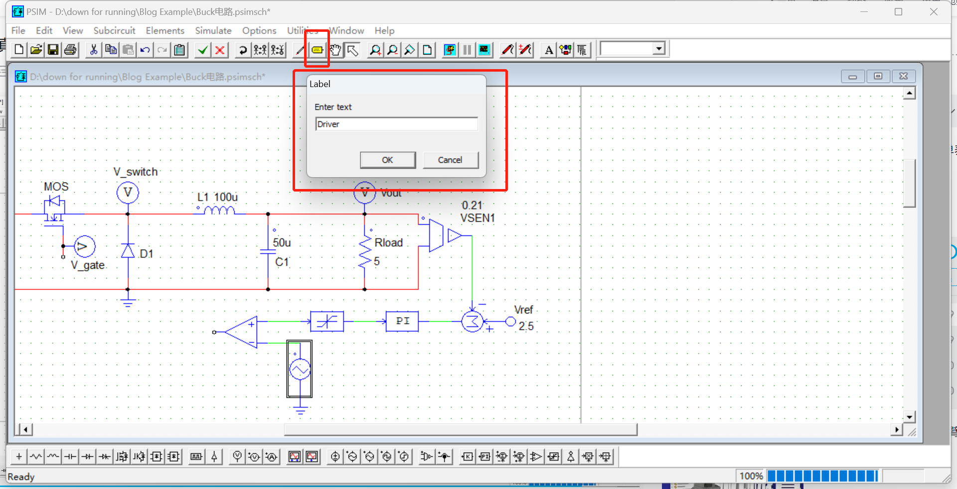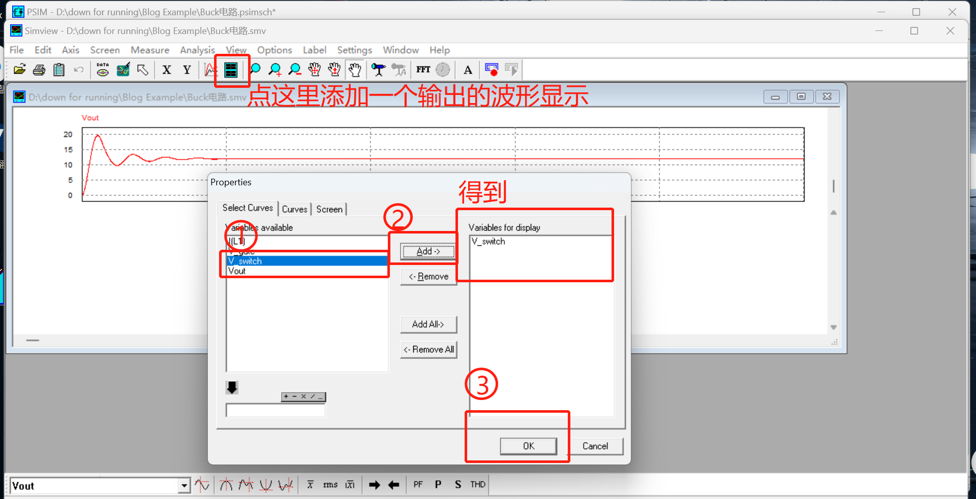 【1-8】进一步设置,例如开关管需要一个驱动波形,添加一个电压探头