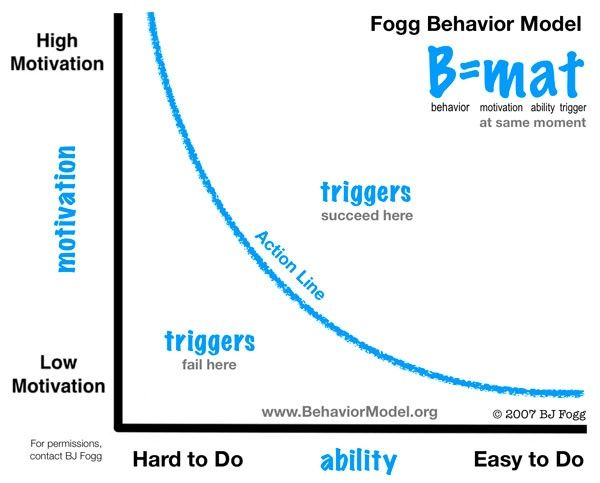 既然行动对于习惯养成至关重要,那么产品设计人员如何影响用户的动作了?有没有什么行为模式?答案肯定是有的。下面给大家介绍Fogg行为模式。