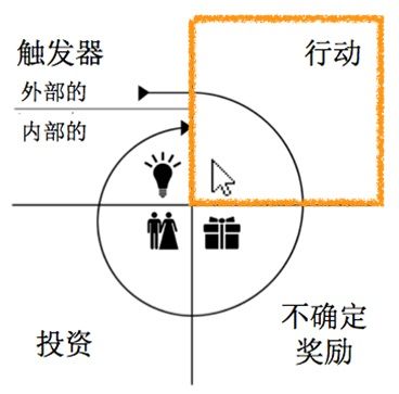 圈套模式的第二步就是行动。通过触发器,外部或者内部这样的诱导提示用户下一步去做什么。如果用户就是不做出任何反馈动作,那么前面的触发器就是扯蛋的,没用。