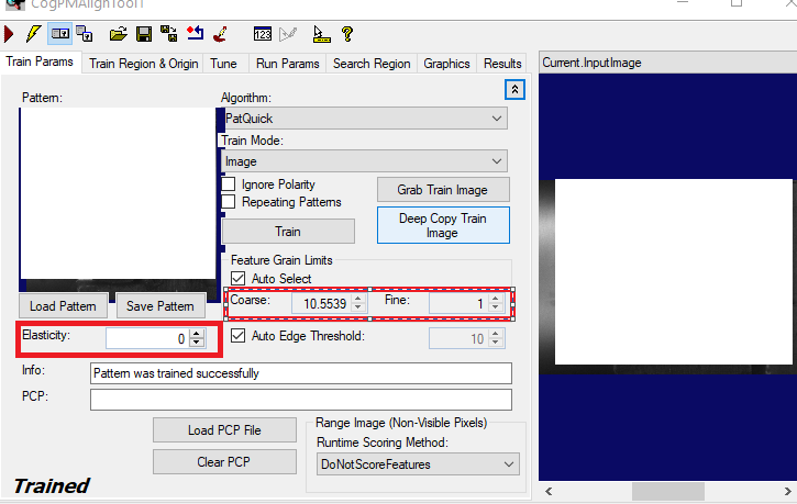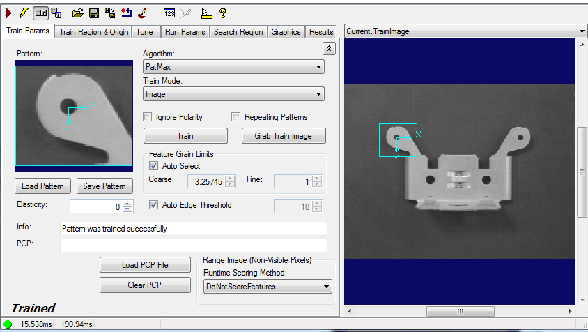 您可以在包含已训练图案的 Current.TrainImage 缓冲区中显示这些特征: