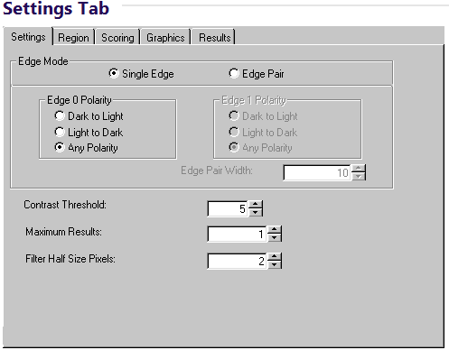 - 边缘模式(EdgeMode) :确定卡钳工具是为每个结果搜索单个边缘还是边缘对。