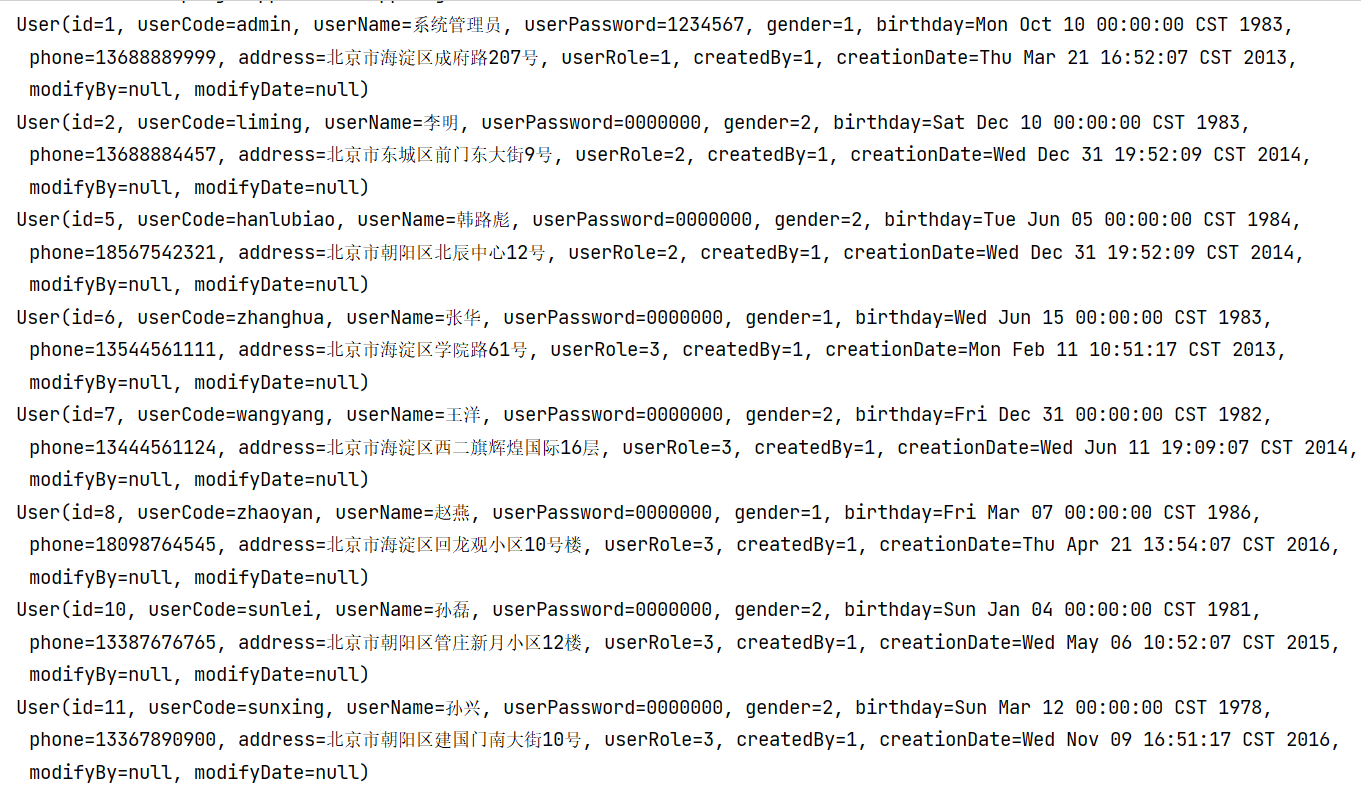 Integer i = userMapper.addUser(new User(16, "wenwen", "文文", "297999", 2, null, null, null, null, null, null, null, null));