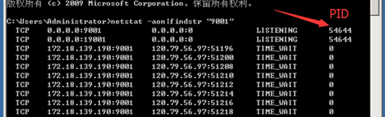tasklist|findstr "54644" 过滤只显示PID为54644的进程