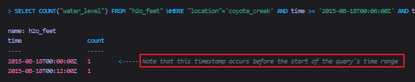 在基本用法中,GROUP BY time()查询通过当前InfluxDB数据库的预设时间边界来确定每个时间间隔中包含的原始数据和查询返回的时间戳,这有可能会导致预期之外的结果值。