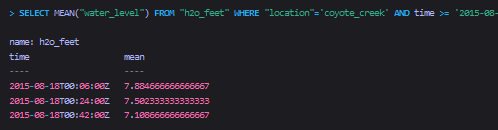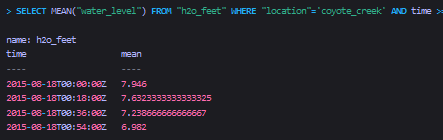 ELECT MEAN("water_level") FROM "h2o_feet"