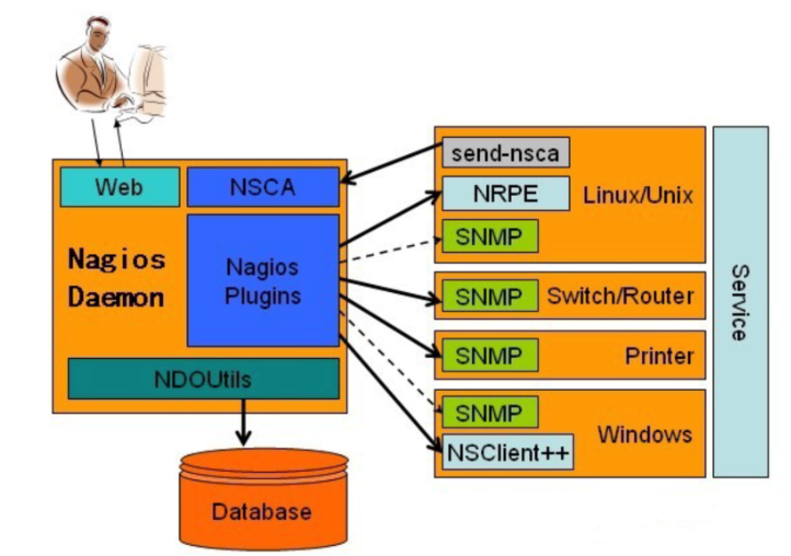Nagios的功能是监控服务和主机,但是他自身并不包括这部分功能,所有的监控、检测功能都是通过各种插件来完成的。