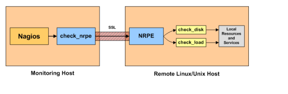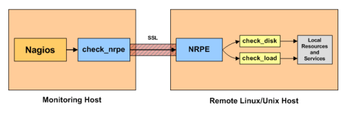 NRPE是一个可在远程Linux/Unix主机上执行的插件的外部构件包。如果你需要监控远程的主机上的本地资源或属性,如磁盘利用率、CPU负荷、内存利用率等时是很有用的。