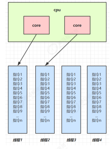 - 但如果是四核 cpu,各个核心分别使用线程 1 执行计算 1,线程 2 执行计算 2,线程 3 执行计算 3,那么 3 个