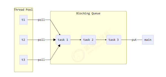 // 创建任务对象 FutureTask<Integer> task3 = new FutureTask<>(() -> { log.debug("hello"); return 100; }); // 参数1 是任务对象; 参数2 是线程名字,推荐 new Thread(task3, "t3").start(); // 主线程阻塞,同步等待 task 执行完毕的结果 Integer result = task3.get(); log.debug("结果是:{}", result);