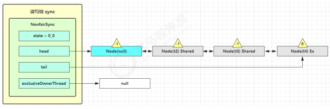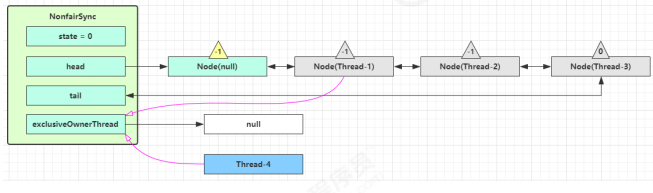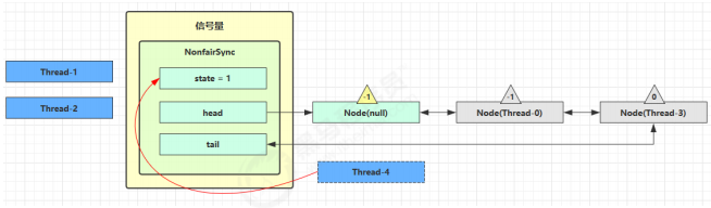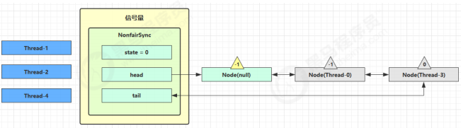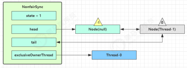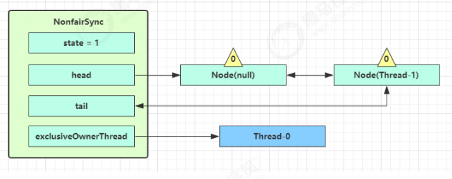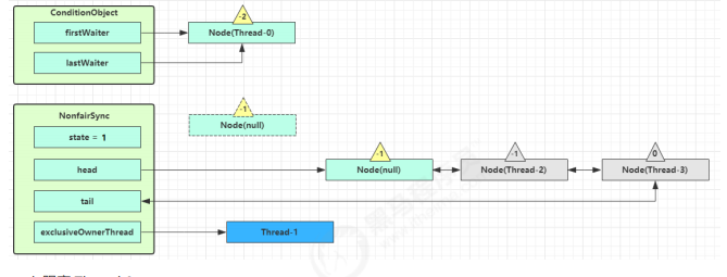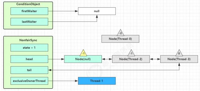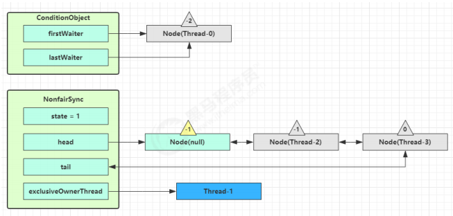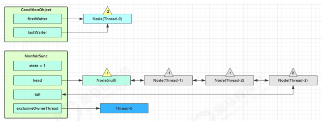 2. 加锁分析 ==高明之处==在于用了两把锁和 dummy 节点 用一把锁,同一时刻,最多只允许有一个线程(生产者或消费者,二选一)执行 用两把锁,同一时刻,可以允许两个线程同时(一个生产者与一个消费者)执行 消费者与消费者线程仍然串行 生产者与生产者线程仍然串行 线程安全分析 当节点总数大于 2 时(包括 dummy 节点),putLock 保证的是 last 节点的线程安全,takeLock 保证的是 head 节点的线程安全。两把锁保证了入队和出队没有竞争 当节点总数等于 2 时(即一个 dummy 节点,一个正常节点)这时候,仍然是两把锁锁两个对象,不会竞争 当节点总数等于 1 时(就一个 dummy 节点)这时 take 线程会被 notEmpty 条件阻塞,有竞争,会阻塞