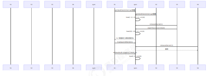 public E take() throws InterruptedException { E x; int c = -1; final AtomicInteger count = this.count; final ReentrantLock takeLock = this.takeLock; takeLock.lockInterruptibly(); try { while (count.get() == 0) { notEmpty.await(); } x = dequeue(); c = count.getAndDecrement(); if (c > 1) notEmpty.signal(); } finally { takeLock.unlock(); } // 如果队列中只有一个空位时, 叫醒 put 线程 // 如果有多个线程进行出队, 第一个线程满足 c == capacity, 但后续线程 c < capacity if (c == capacity) // 这里调用的是 notFull.signal() 而不是 notFull.signalAll() 是为了减少竞争 signalNotFull() return x; }