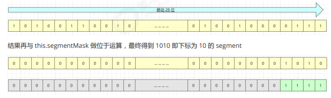 例如,根据某一 hash 值求 segment 位置,先将高位向低位移动 this.segmentShift 位