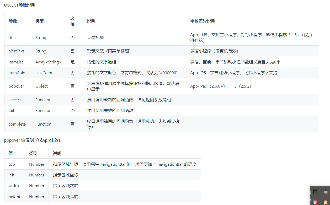 uni.showActionSheet({ itemList: ['A', 'B', 'C'], success: function (res) { console.log('选中了第' + (res.tapIndex + 1) + '个按钮'); }, fail: function (res) { console.log(res.errMsg); } });