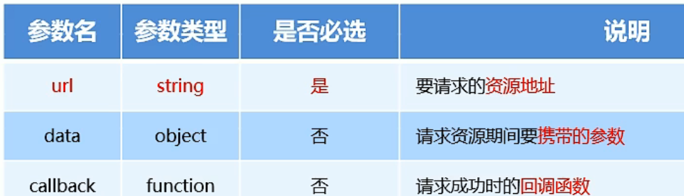 jQuery 中 $.get()函数的功能单一,专门用来发起get请求,从而将服务器上的资源请求到客户端来进行使用。
