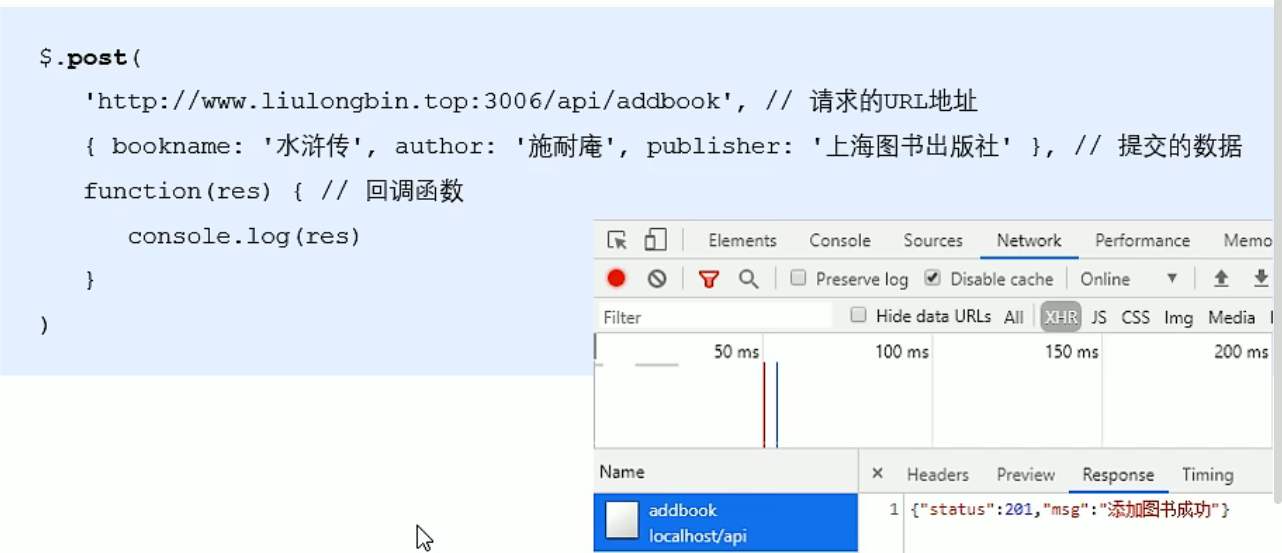 jQuery 中 $.post()函数的功能单一,专门用来发起post请求,从而向服务器提交数据。