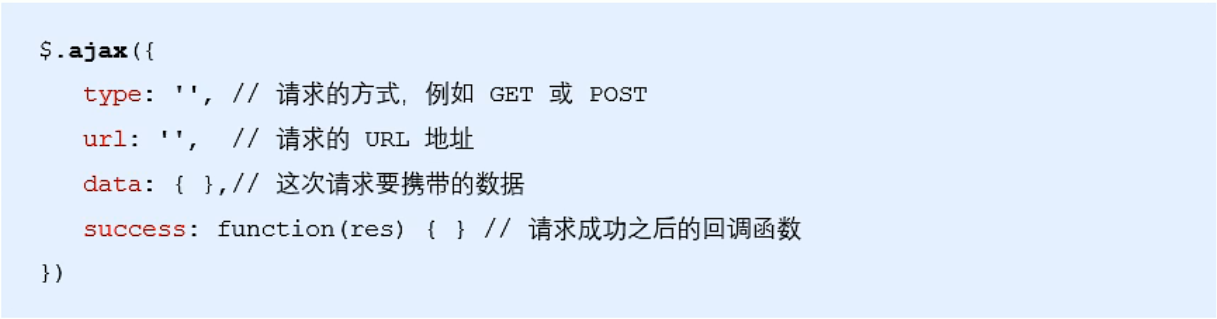 使用 $.ajax() 发起 GET 请求时, 只需要将 type 属性的值设置为 'GET' 即可: