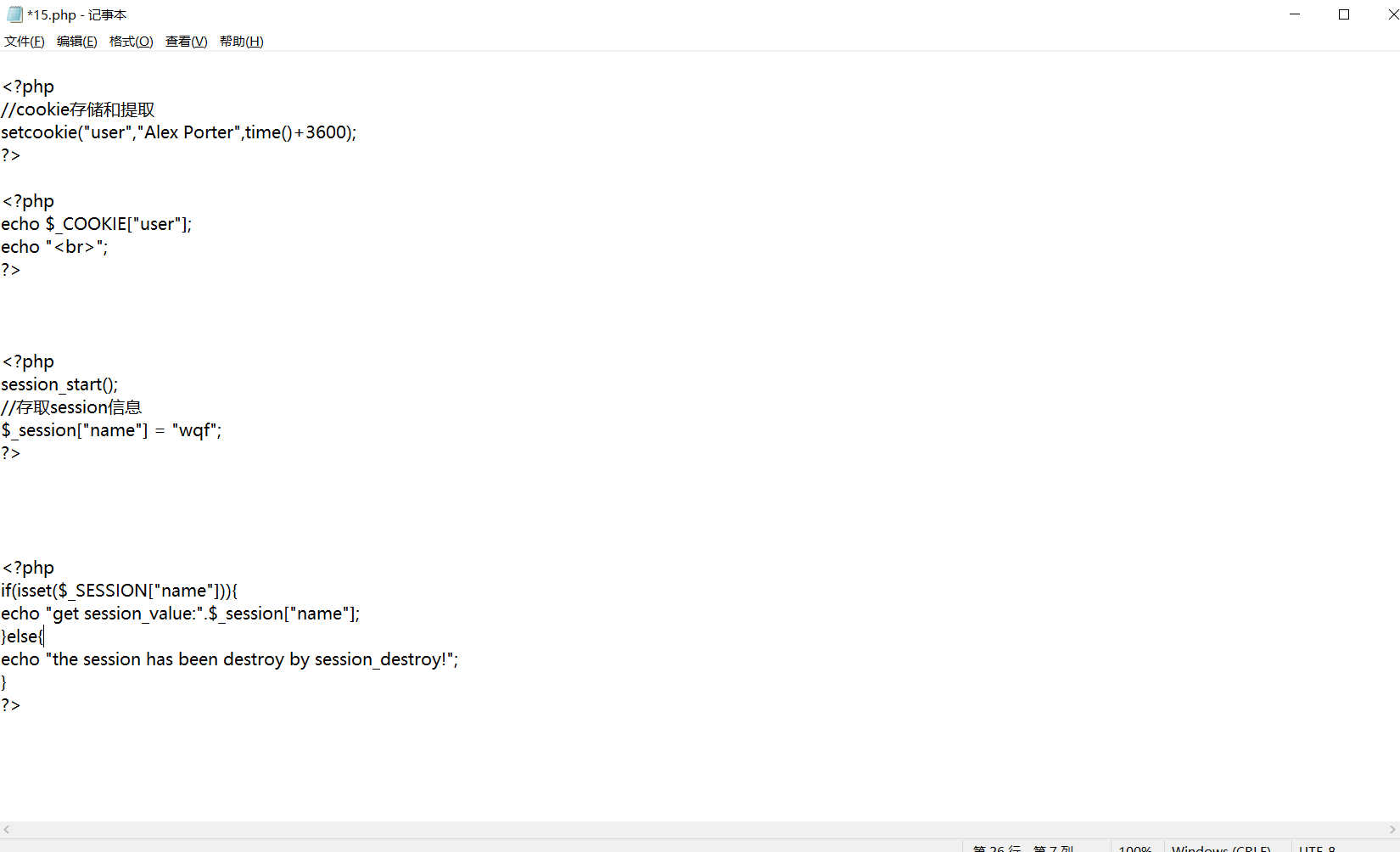 与cookie相比,他直接给容器上加数局就可以了,但是需要先打开会话(session_start())。