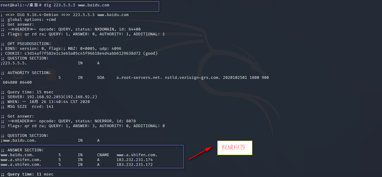 `dig 114.114.114.114 要查询的域名:使用权威dns服务器来解析域名查询`