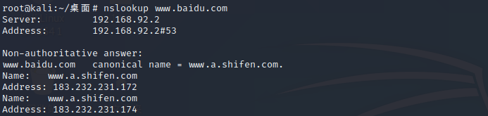 (2)`nslookup 要查询的域名:使用本地dns进行非权威域名查询`