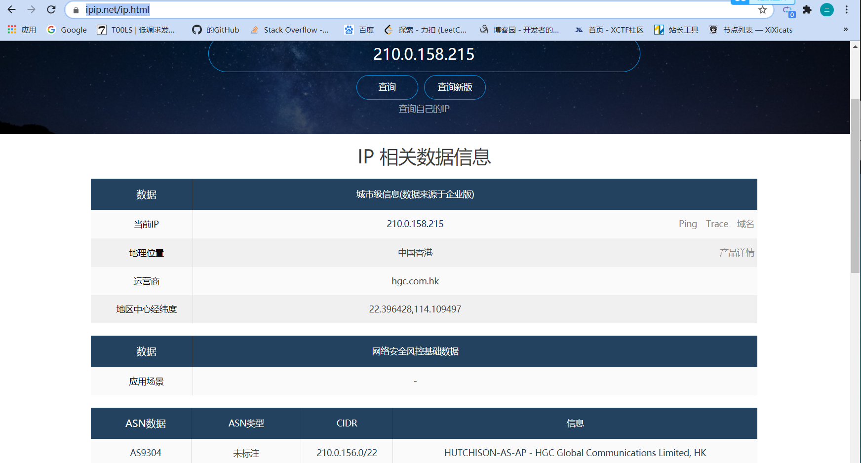 (3)`https://www.ipip.net/ip.html`根据具体的网址查询路由器出口的位置(常用)