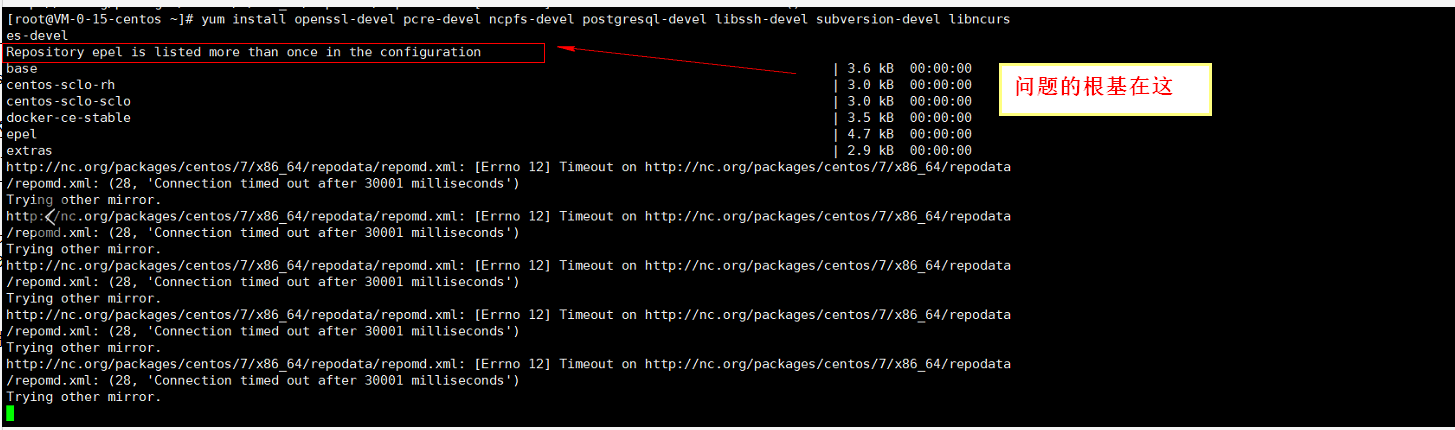 遇到的问题:我的服务器出现的问题,使用yum时出现了问题,如下图,yum源不能用