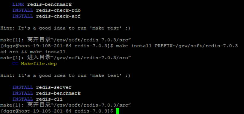 # make install PREFIX=/gzw/soft/redis-7.0.3