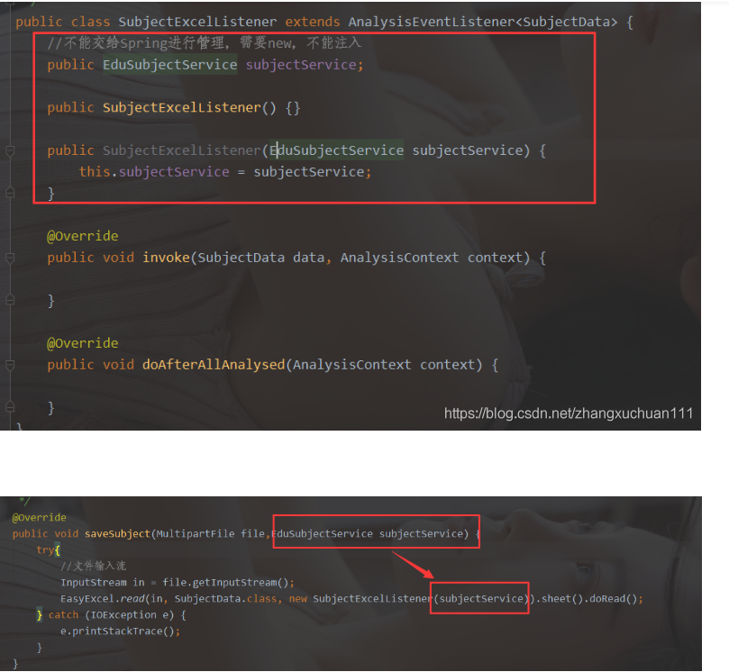 1.使用EasyExcel的坑。实际开发中因为读操作中的监听器不能交给spring进行管理,所以不能进行注入实现对数据库的操作