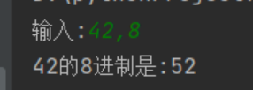 x, n = eval(input("输入:")) y=x z=[] d=["A", "B", "C", "D", "E", "F"] while x != 0: p = x % n if n == 16: if p > 9: b = p%10 p = y[b] z.append(p) x=x // n z.reverse() t= "".join("%s" % i for i in z) print('{}的{}进制是:{}'.format(y,n,t))