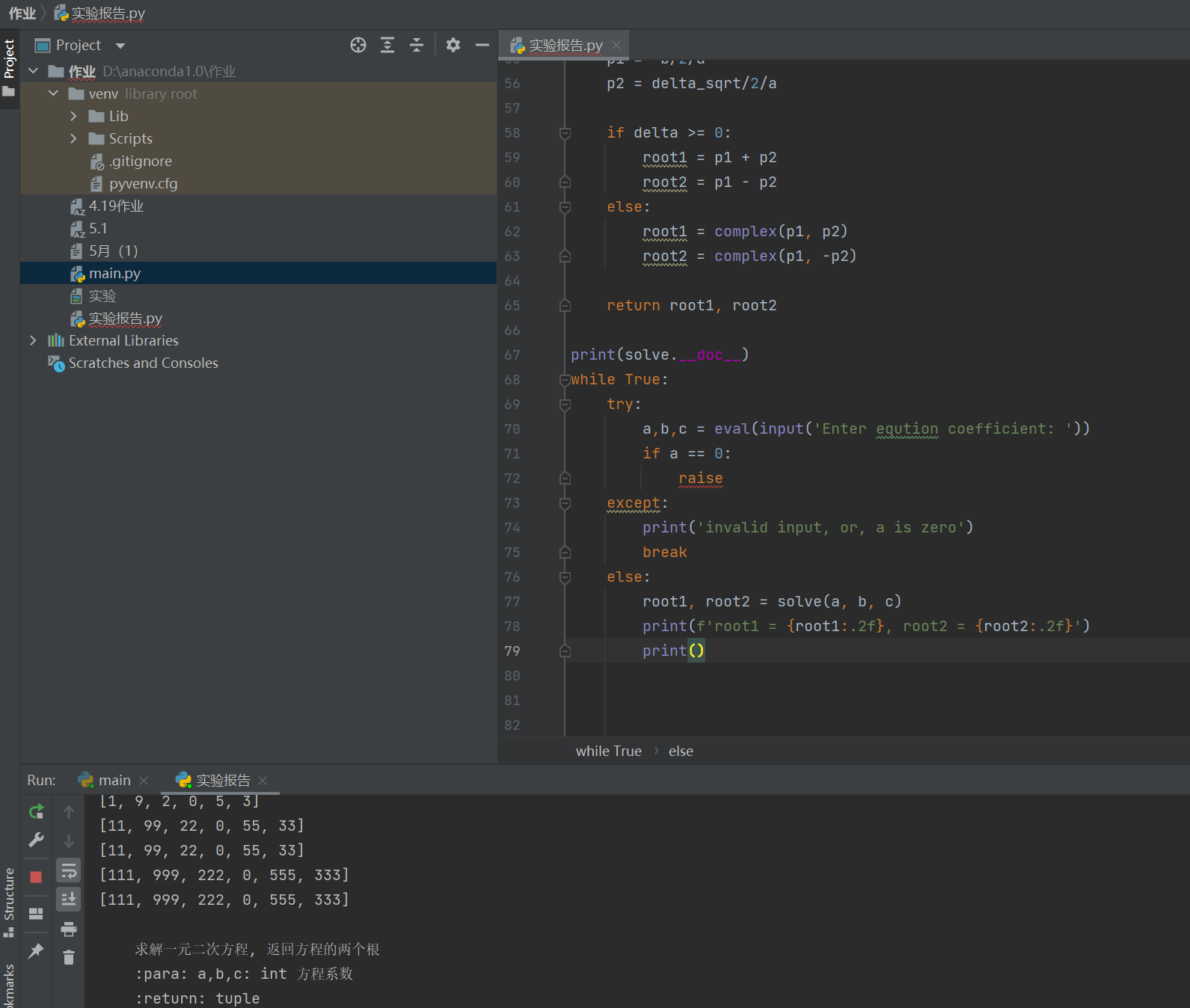 求解一元二次方程, 返回方程的两个根