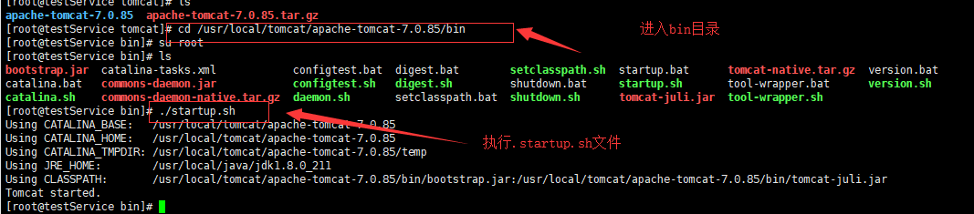 解压完毕过后,进入解压文件夹下的bin目录下,运行 startup.sh 文件