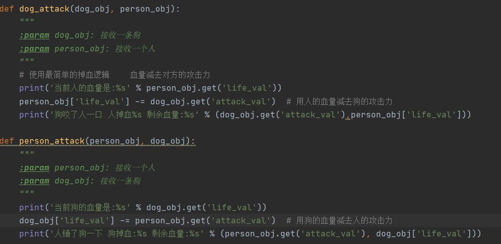 dog_obj['life_val'] -= person_obj.get('attack_val') # 用狗的血量减去人的攻击力
