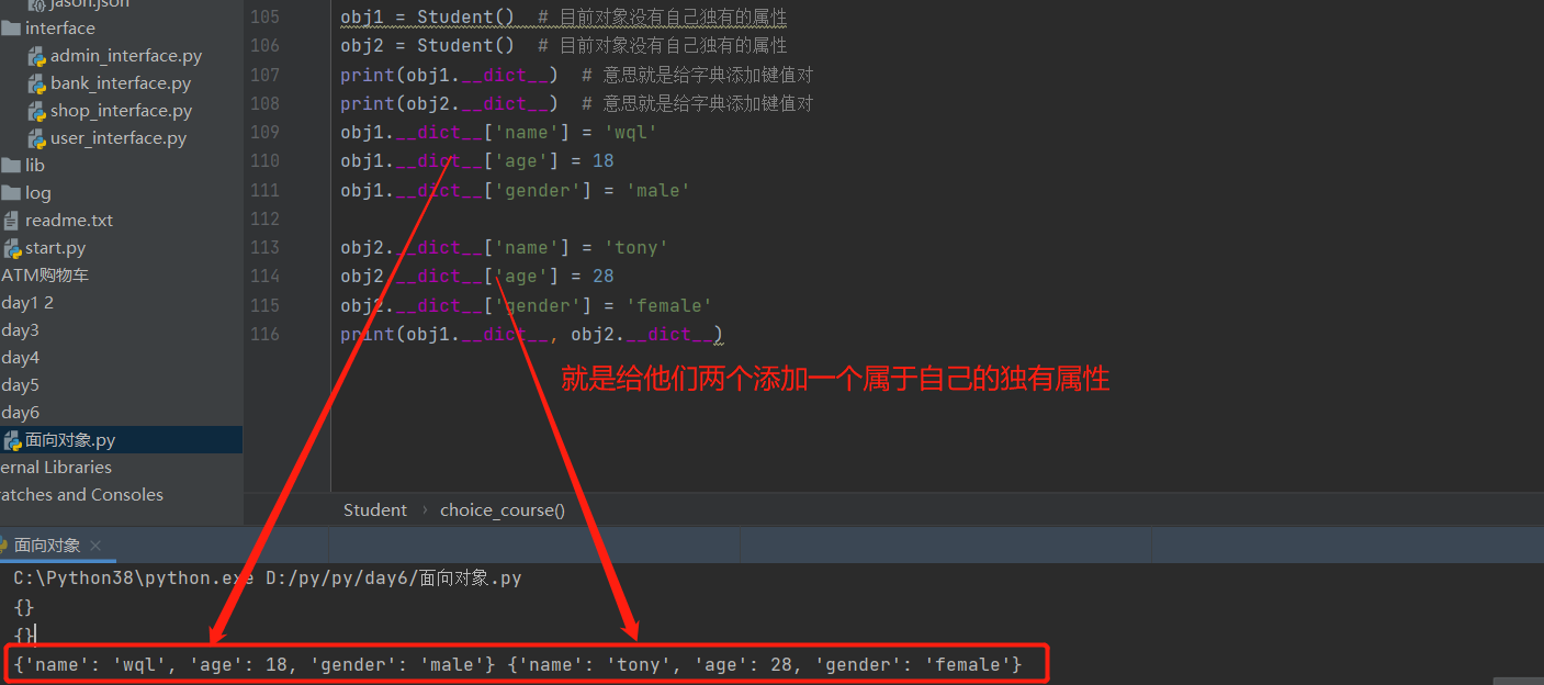obj1.__dict__['gender'] = 'male' # obj1.gender = 'male'