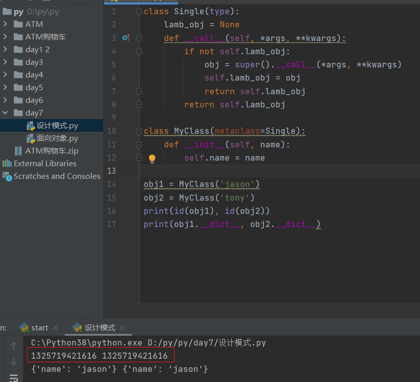 print(id(obj1), id(obj2)) # 查看两个id是否一致 类只要加括号实例化就会产生一个全新的对象