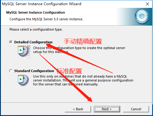 8.两个选项,一个手动精确配置,一个标准配置,建议选择手动精确配置(熟悉配置过程),点击下一步
