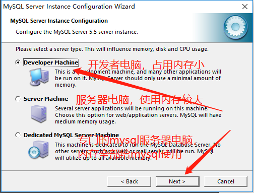 9.选择服务器类型,选择开发者电脑,点击下一步