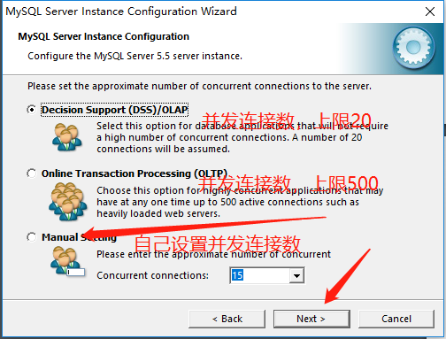12.设置同时访问数据库的最大连接人数,选择第三个,根据自己需求,设置最大连接数