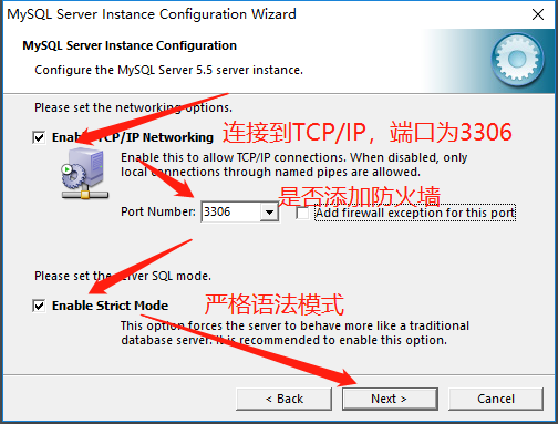 13.是否启用TCP/IP连接,以及端口的设置。不启用TCP/IP连接就只能本机访问数据库,端口默认3306即可,不建议修改,