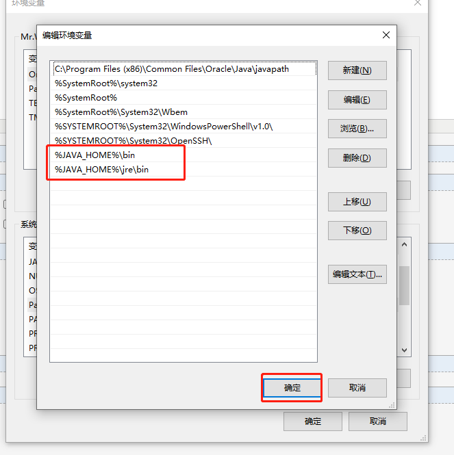 3.系统环境变量中找到PAHT 添加 以下内容: %JAVA_HOME%\bin %JAVA_HOME%\jre\bin
