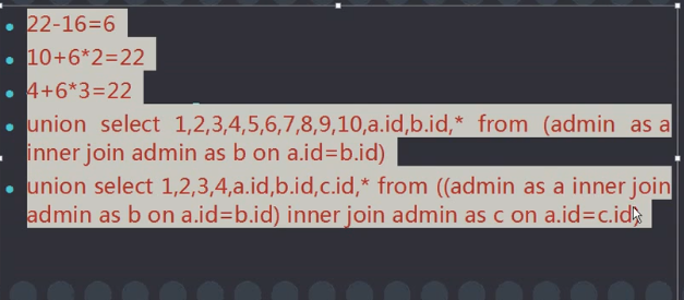 使用方法,在猜字段时,如果出现猜不到列名的情况下可以将select后的数字最后一个加上*,然后挨个从后往前删除数字直到不报错
