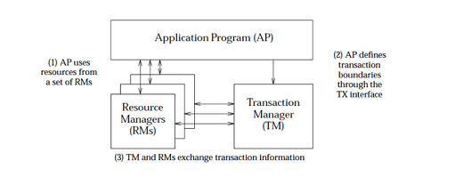 其中应用程序(Application Program ,简称AP):AP定义事务边界(定义事务开始和结束)并访问事务边界内的资源。