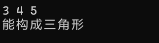 1 // 从键盘上输入三个数据作为三角形边长,判断其能否构成三角形 2 // 构成三角形的条件: 任意两边之和大于第三边 3 #include <stdio.h> 4 int main() 5 { 6 double a, b, c; 7 // 输入三边边长 8 scanf("%lf%lf%lf", &a, &b, &c); 9 // 判断能否构成三角形 10 // 补足括号里的逻辑表达式 11 if(a+b>c&&a+c>b&&b+c>a) 12 printf("能构成三角形\n"); 13 else 14 printf("不能构成三角形\n"); 15 return 0; 16 }