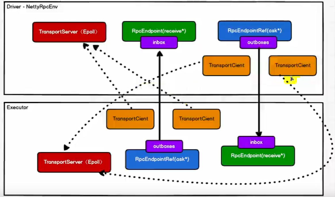 Driver于Exceutor通信的方式,发件箱和收件箱,发件箱与服务通信