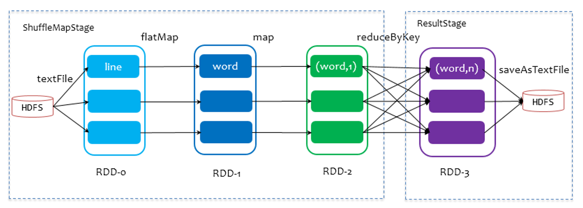- Stage以RDD宽依赖(即Shuffle)为界,遇到Shuffle做一次划分