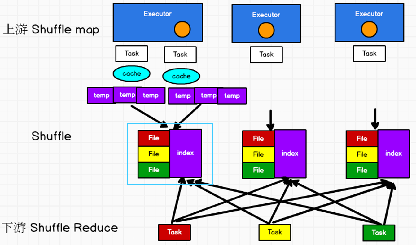意味着一个Task的所有数据都在这一个文件中。同时单独写一份索引文件,标识下游各个Task的数据在文件中的索引,start offset和end offset。