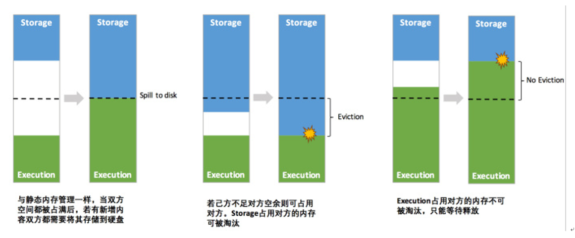 Spark 通过对存储内存和执行内存各自独立的规划管理,可以决定是否要在存储内存里缓存新的 RDD,以及是否为新的任务分配执行内存,在一定程度上