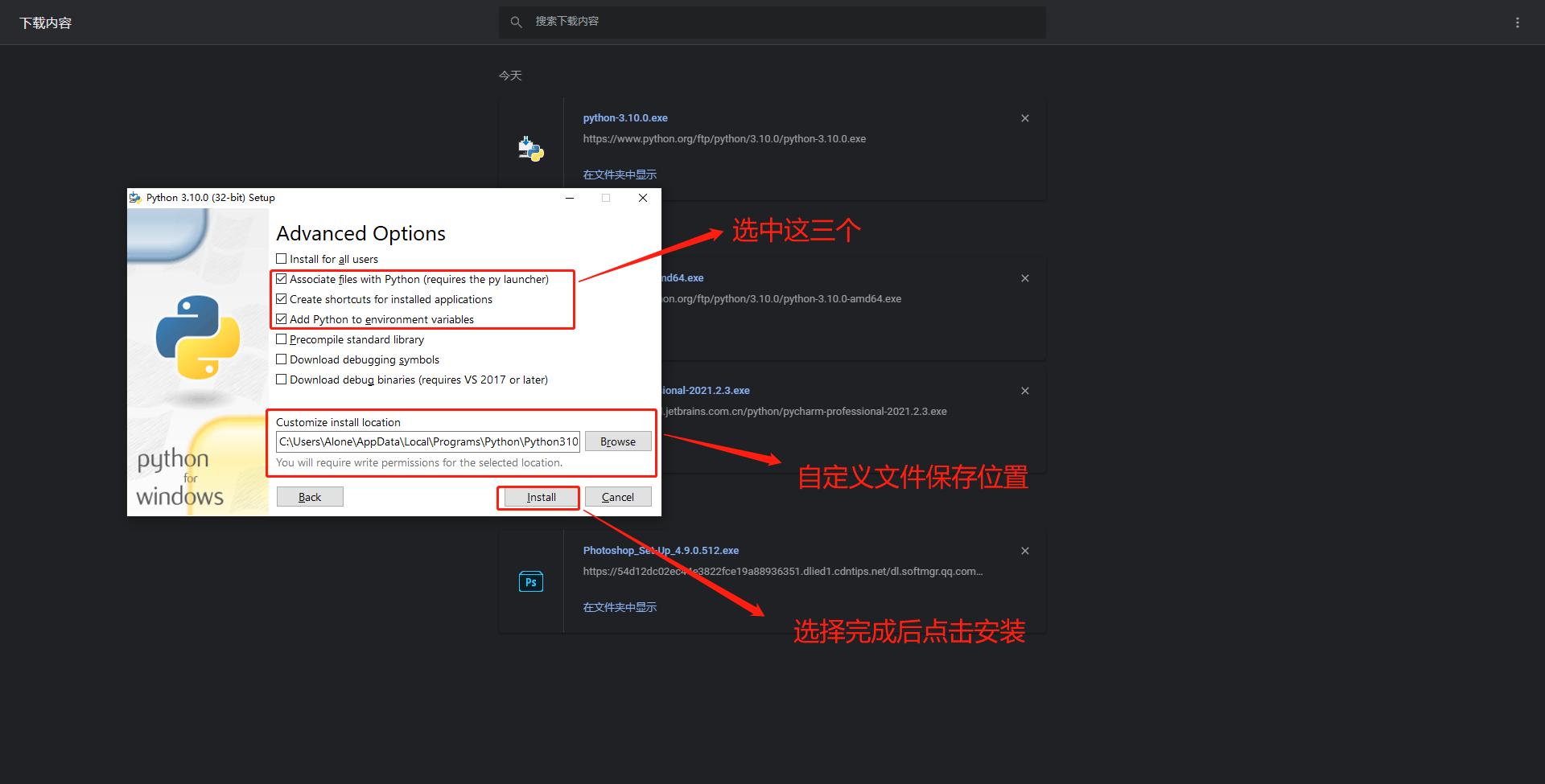注意勾选Add Python 3.10 to PATH,这个是自动配置环境变量