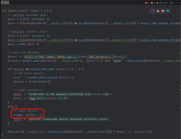 后端加入了 sleep(2) 函数,旨在减缓暴力破解的速度。