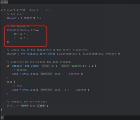 后端设置了黑名单,过滤了 && 和 ; 等常用连接符。
