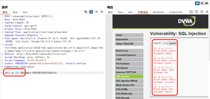 报告说明: 本报告基于 DVWA 靶场中等级别安全设置。相比于低等级,中等级别加入了基础的防御机制(如后缀检查、简单的字符串过滤及 CSRF Token 验证),本报告详细记录了 17 项漏洞的绕过技巧与复现过程。